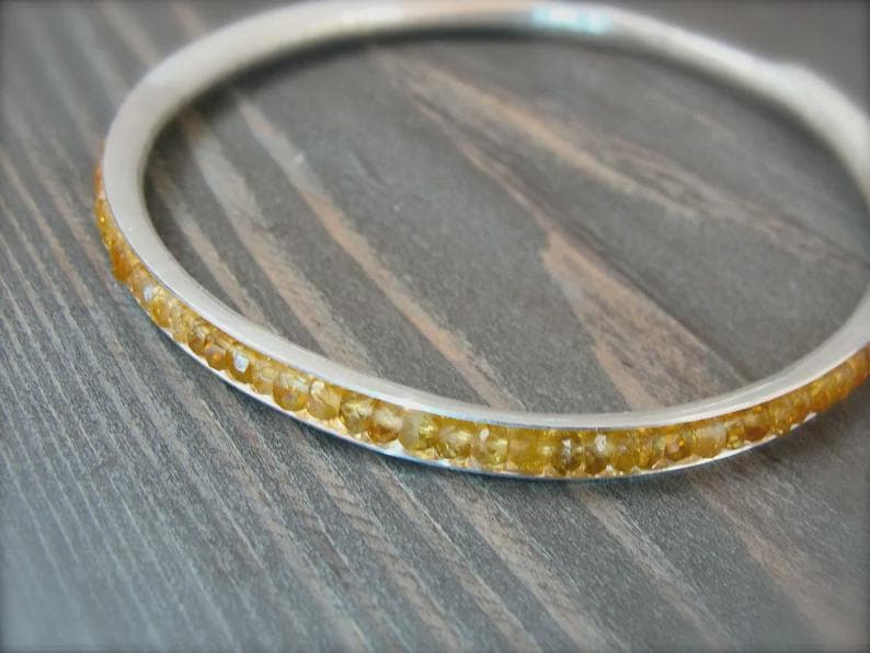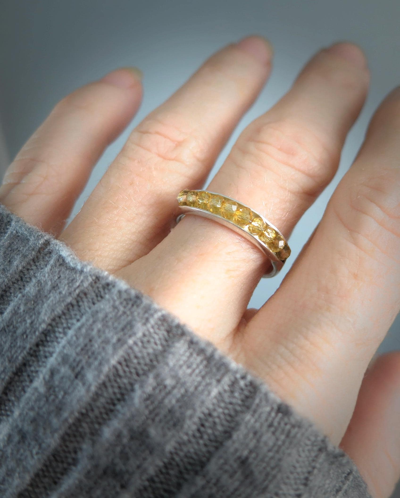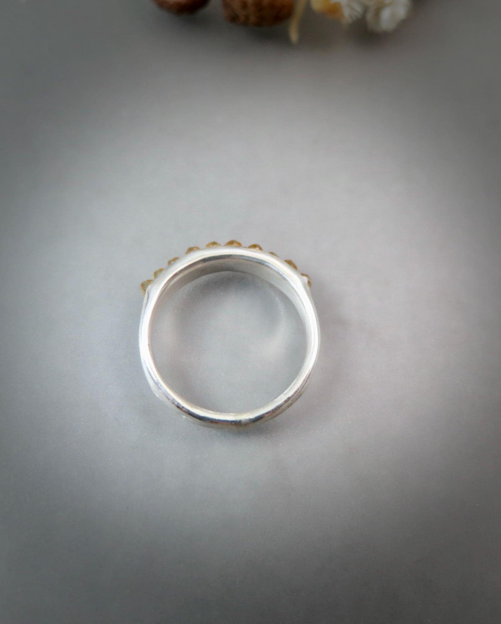 This handmade stacking ring is crafted in solid sterling silver and set with a shimmering citrine gemstones. The birthstone for November, warming, energizing, and a highly creative stone. It energizes every level of your life and is a powerful attractor of helpful friends and mentors.