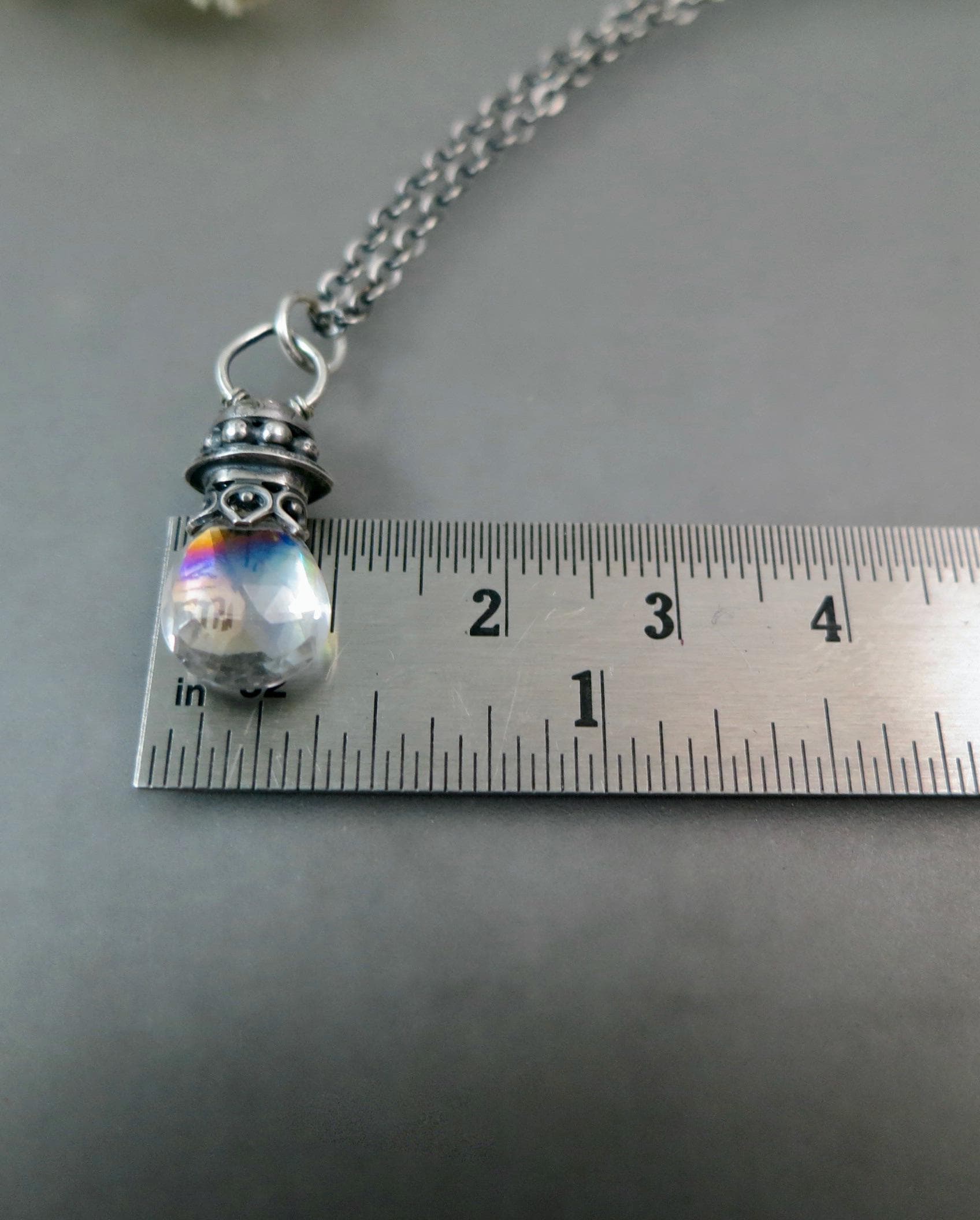 Pendant measures 1/2", hangs 1".