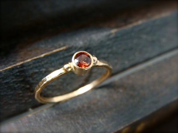 Handmade Garnet 14k Gold Ring – Hammered Stacking Band, January Birthstone